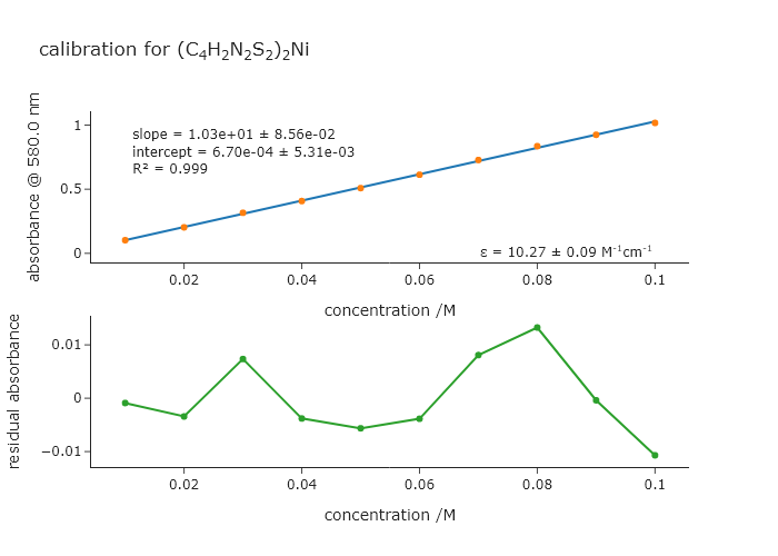 fig.update_layout(template = 'simple_white', title = f'calibration for {quickHTMLFormula("(C4H2N2S2)2Ni")}')