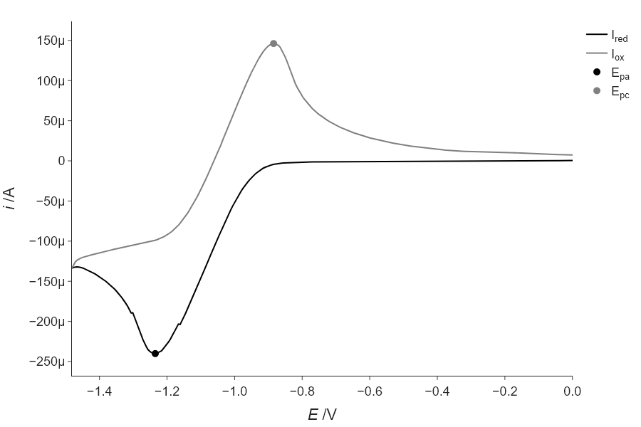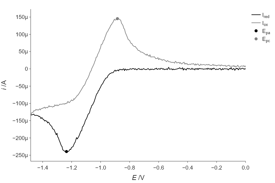 Find the peaks of the reduction and oxidation waves in a CV experiment